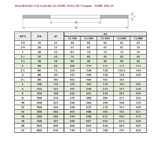 ASMEB16.5,法蘭用非金屬,平墊片的尺寸,ASME B16.21