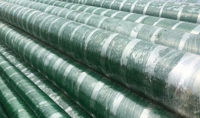 3. 聚氨酯澆注: 調(diào)整高壓發(fā)泡機(jī)的混合比為 1: 1.05 →測定設(shè)備流量→設(shè)定澆注時間( 投料量/ 流量)。在穿管完畢管道兩端封堵后的 HDPE 外護(hù)管中間正上位置開澆注孔→將高壓發(fā)泡機(jī)混合頭的澆注嘴插入澆注孔→澆注→料空塞封堵澆注孔→熟化→拆卸卡頭→檢驗(yàn)→修正投料量→成品。 3.1.2 玻璃纖維增強(qiáng)塑料外護(hù)層聚氨酯泡沫塑料預(yù)制直埋保溫管 a. 參考標(biāo)準(zhǔn): CJ/T 129-2000 b. 玻璃纖維增強(qiáng)塑料外護(hù)層介紹:
