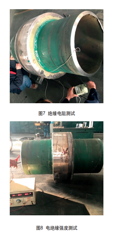 解決方案:試驗測試法。產(chǎn)品完成密封試驗后, 應采用檢測設備,對絕緣接頭完成絕緣電阻測試,且 應逐臺測試。測試合格后,在絕緣接頭兩端加頻率為 50Hz的正弦波交流電,在所規(guī)定的時間內(nèi),不應出現(xiàn) 表面電弧和絕緣損壞。 對于用在輸油管線的絕緣接頭,在出廠前按同規(guī) 格的5%,且不少于1臺,需進行浸入電解液后的絕緣電 阻測試,且之后還應進行電絕緣強度合格性的驗證。