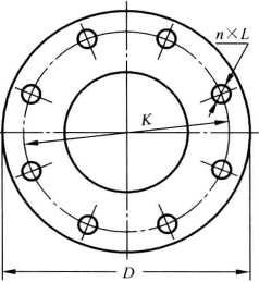 K、螺栓孔徑L、螺栓數(shù)量n及螺栓的螺紋規(guī)格5個參數(shù),見圖1-10。