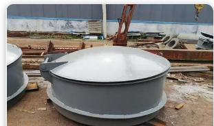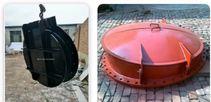 拍門是低揚程泵站不可缺少的斷流設施之一。按照GB/T 50265--97《泵站設計規(guī)范》的規(guī)定,當泵站 單臺泵流量在8 m3/s及以下(特別是口徑1.6 m及以下的軸流泵或導葉式混流泵),其出口可選用整體自由 式拍門;當單臺泵流量較大時,可選用快速閘門、雙節(jié)自由式或液壓控制式及機械控制式拍門[1]。但是,無論 是哪種形式的拍門或閘門,都面臨運行阻力、閉門撞擊力及停機斷流的安全可靠等問題。 目前國內外口徑1.6 m及以下的泵,其出水流道出口一般采用整體自由起落式拍門。為增大拍門運行 時的張開角、減小運行阻力和閉門撞擊力,最早采用了平衡錘裝置,后來改為加設液壓緩沖裝置。由于這些 設施、設備常年浸泡在水下,維護管理不便,工作不可靠,后來將拍門改為空腹結構,即做成浮箱式,以增加浮 力、減小運行阻力。 球殼形拍門最早于20世紀80年代中期在湖北黃岡出現(xiàn),以后在湖北、湖南等一些水泵口徑為1.6 m的 大型泵站中有所采用,并一度受到歡迎,但由于研究不夠,沒有得到重視和推廣。1993年,武漢水利電力大 學在調查、研究和總結的基礎上對其進行了改進,并應用于湖北公社閘泵站,多年的運用經驗表明其使用效 果較好,但研究尚不充分,結構有待進一步優(yōu)化和完善。 平面浮箱式拍門是用型鋼和鋼板焊接而成,目前許多泵站都有采用。這種拍門的主要缺點是耗材多,門 扇笨重、受力非對稱,安裝使用都不方便。球面浮箱式拍門是在球殼形拍門的基礎上經改進提出來的,其門 扇僅由球面板和腹板焊成,內部是空腔。這種拍門結構輕巧,受力條件和剛度好,能兼收球殼型拍門和平面 浮箱式拍門的優(yōu)點。