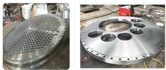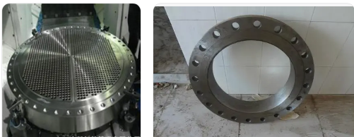 法蘭配套產(chǎn)品 折流板法蘭生產(chǎn) 材料:不銹鋼 碳鋼 合金鋼 交期:標準法蘭常年現(xiàn)貨 描述:聯(lián)系站長免費領(lǐng)取法蘭標準及重量表 規(guī)格: DN20-DN3000 在線咨詢 產(chǎn)品詳情 為了提高殼程流體 的流速,通常在殼體內(nèi) 安裝一定數(shù)目與管束相 垂直的折流擋板,這樣 可使流體循規(guī)定路徑多 次橫向流過管束,增加 湍流程度,提高管問對流傳熱系數(shù)。常用的折流板的形式 有弓形和圓環(huán)形兩種,弓形折流板有單弓形、雙弓形和三 弓形3種,如圖1所示。 以重整一歧化聯(lián)合裝置預(yù)加氫部分的預(yù)加氫進料換 熱器為例:設(shè)備公稱直徑DNl200、折流板材質(zhì) 0Crl8Nil0Ti、折流板外圓直徑1194ram、厚度12ram,設(shè) 備簡圖見圖2,折流板型式見圖3。 傳統(tǒng)的加工方法足先加工成型管板,折流板的下料通 常留出5—6ram機加余量,因此本設(shè)備按尺寸咖1200等離 子切割下料,可數(shù)控下料,也可人工下料,然后在每塊折流 板上劃出十字中心線與順序號標記l樣、2#……14#、15#。 接下來固定折流板,通常先校平折流板,按十字中心線對 正,l號板在卜,按序號排列其余各板,用焊機點焊周邊使 其成為一體。然后將其放入已加工好的固定管板之下,通 過管板向下引鉆,以達到折流板管孔和管板管孔方位一致 的效果,最后擴鉆管孔,按折流板實際外圓尺寸車削折流 板,剪切折流板圓缺,以此實現(xiàn)折流板的加工成型。 厚度12mm的0Crl8Nil0Ti的鋼板規(guī)格通常為 1800mmx6000mm,用此板下料的下料圖見圖4,此方法 折流板用料需要3張鋼板。 新t藝按圖6 所示數(shù)控下料(在弓 面處有余量,其余處 按折流板外形)。由 于折流板缺口處的 管孑L為半圓,而鉆頭 不能加工半孔,所以 下料時在尺寸上要 多下半孑L的尺寸,見圖5。由于1#折流板為圓形,我們先 將l#折流板和車削好的管板一起鉆孔,然后分別將3群、 5#、7#、9#、1l桴、13#、15#折流板按順序號排列,十字中心 線對正點焊為一體,放于以鉆好孔的管板之下,按十字中 心線對正,通過管板引鉆,完成左右兩面缺口的折流板的 鉆孔。再將2#、4#、6群、8#、10#、12#、14#左右半弓形折流 板按順序號排列,十字中心線對正點焊為一體,中間放 1 149mmx324mmx84mm的方形支架丁裝(主要起定位作 用),放于管板下面,按十字中心線對正,通過管板引鉆完 成鉆孑L。接下來進入折流板的擴孔序,在擴孔時,需將弓 形折流板與方形工裝一起,與左右兩面缺口的折流板疊 放在一起,擴鉆重疊處管孔,疊放擴孔可以保證重疊處換 熱管孔同心,此步完成后就町以分別擴鉆每一摞折流板 了。最后將多下的半孑L剪切掉,從而完成折流板的加工。 新T藝是按折流板外形進行數(shù)控下料,在鉆孔過程 中添加了一個比較簡單的工裝。按此工藝折流板用料僅 需要1.3張鋼板,比傳統(tǒng)加工方法節(jié)省一倍多的材料。大大提高了材料的利用率。在鉆孔中避免了那些無渭的鉆 孔與擴孑L,縮短|『鉆頭行進的量程,從而可以達到縮短t 時的效果。 實踐證明采取的此種改進工藝措施是切實可行的, 以我廠這次加工的預(yù)加氫進料換熱器為例,本設(shè)備共制 造3臺,折流板共用0Crl8Nil0Ti折流板鋼板4張,比傳 統(tǒng)工藝方法少用5張鋼板,并且縮短了加工工時,突出顯 示了凈尺下料的經(jīng)濟效益。